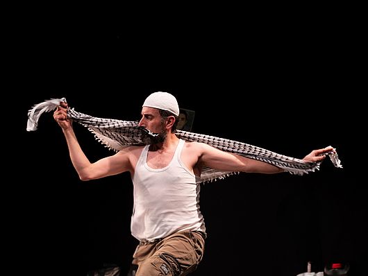 Né dans le camp de réfugiés de Jénine pendant la première intifada, Ahmed Tobasi a connu très jeune la violence de l’occupation, la lutte armée, la prison, l’exil. And Here I Am retrace son parcours, de la résistance armée à la résistance artistique, dans un seul en scène poignant.