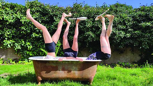 Trois jongleuses, une baignoire, 11 massues, 12 mains, 100 balles.