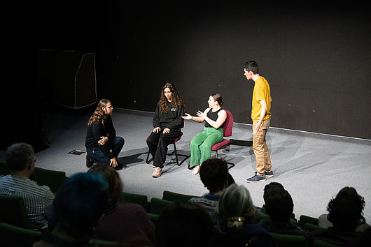Sous la houlette de l'arbitre et sur base de thèmes et contraintes imposés, iels vous interpréteront des saynètes totalement improvisées… pour essayer de gagner votre vote !