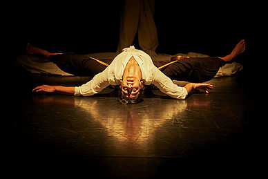Cosmos est le fruit de la rencontre entre Ashtar Muallem, danseuse contorsionniste et acrobate aérienne et Clément Dazin.