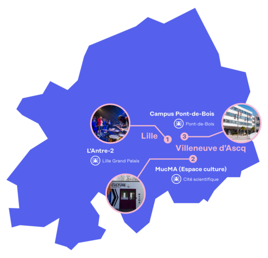 2. MucMA (Espace culture) (amphithéâtre, deux galeries d'expositions, un café culture, une scène ouverte, deux kiosques de répétition, un patio), Campus Cité scientifique, Villeneuve d'Ascq
