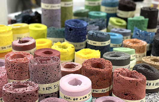 Pendant ces 70 jours d'exploration et de création, elle a expérimenté de nouvelles approches et créé deux sculptures en pâte de verre ainsi que plusieurs œuvres en mousse de verre. Ces créations sont présentées lors de l'exposition « Réminiscences colorées », au MusVerre.